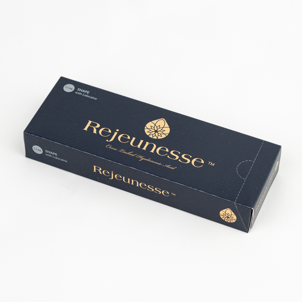 Rejeunesse Shape is a dermal filler that helps correct deep wrinkles, restore lost volume, and contour the face and neck by injecting cross-linked hyaluronic acid into the deep layers of the skin.
